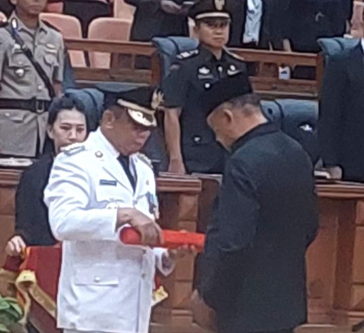 Pacificnews.id-.Gubernur Provinsi Sulut Prof DR (Hc) Olly Dondokambey melantik Abdullah Mokoginta MSi sebagai Penjabat Walikota Kotamobagu, di Kantor DPRD Provinsi Sulut, Senin (12/8/2024).
