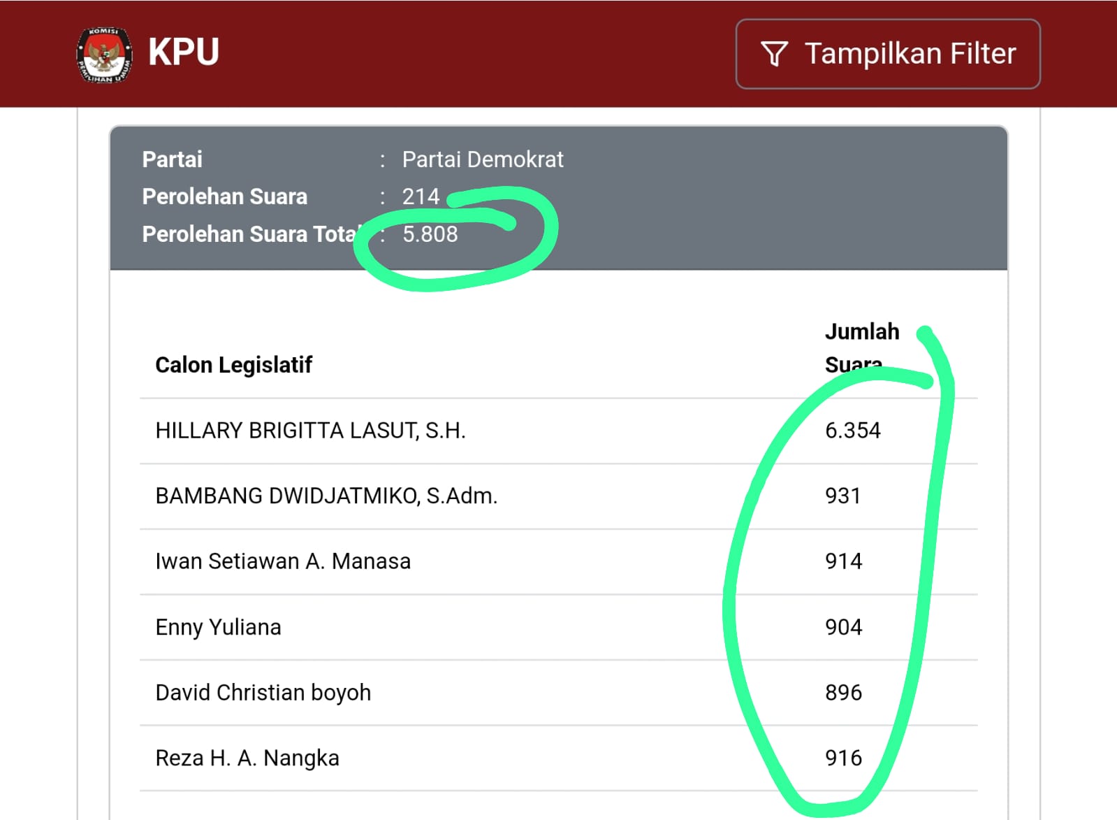 Salah satu yang menjadi sorotan yakni hasil penghitungan caleg DPR RI dapil Sulut sejumlah partai yang data jumlah suara dan total suara tidak sinkron.