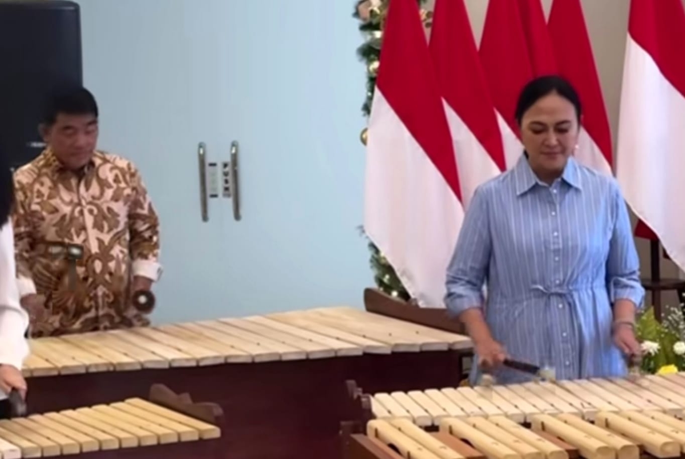 Di ruangan yang dihiasi ornamen Natal serta deretan bendera merah-putih, Gubernur Sulut Yulius Selvanus Komaling terlihat berdampingan dengan sang istri, Anik Fitri Wandriani, memainkan alat musik khas Minahasa tersebut dengan teknik yang rapi dan halus.