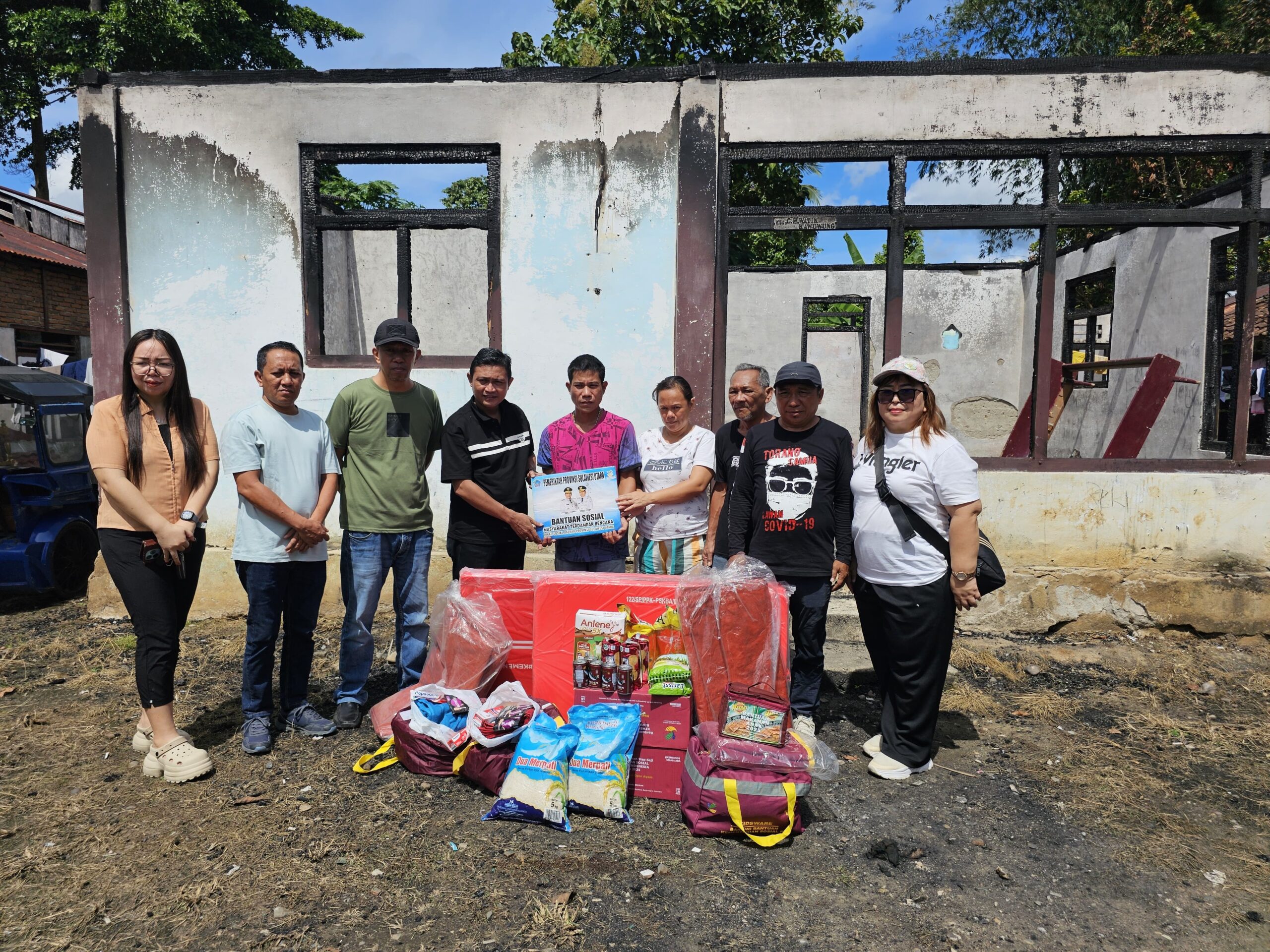 Bantuan yang berasal dari Dinas Sosial Provinsi Sulawesi Utara ini diperuntukkan bagi dua kepala keluarga yang tinggal dalam satu unit rumah yang ludes dilalap api pada Selasa, 25 November 2025 lalu.