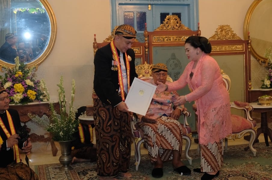 Pemberian gelar bangsawan ini diserahkan langsung oleh Raja Keraton Solo Sri Susuhunan Pakubuwana XIII di Keraton Kasunanan Hadiningrat Solo.Jalan Kamandungan, Baluwarti, Kec. Ps. Kliwon, Kota Surakarta, Jawa Tengah.