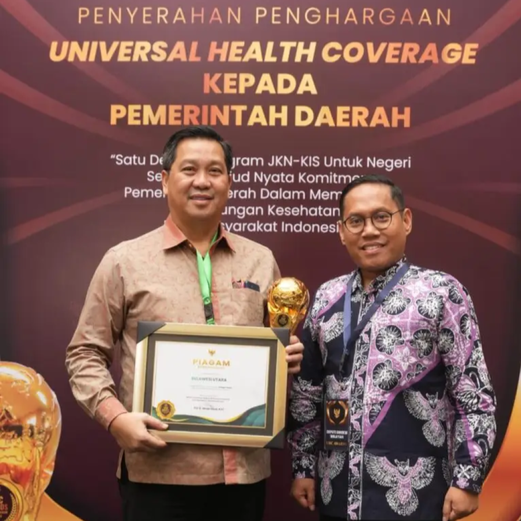 “Puji syukur kepada Tuhan Yang Maha Kuasa, saya mewakili Pemerintah Provinsi Sulawesi Utara menerima Penghargaan UHC,” ujar Wagub ketika menerima penghargaan.