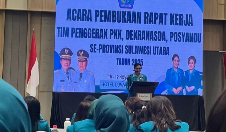 Pacificnews.id-.Gubernur Sulawesi Utara, Mayjen TNI (Purn) Yulius Selvanus, SE, secara resmi membuka Rapat Kerja Tim Penggerak PKK, Dekranasda, dan Posyandu Provinsi Sulawesi Utara, yang digelar di Aula Hotel Luansa Manado, Selasa (18/11/2025).