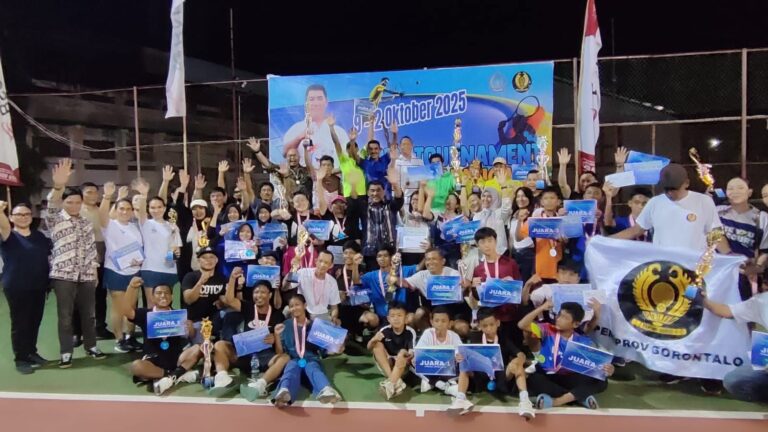 Pacificnews.id-.Gubernur Sulawesi Utara, Mayjen TNI (Purn) Yulius Selvanus menutup secara resmi Open Turnamen Tenis Lapangan Piala Gubernur Sulut di Lapangan Tenis KONI Sario, Manado, Minggu (12/10/2025).